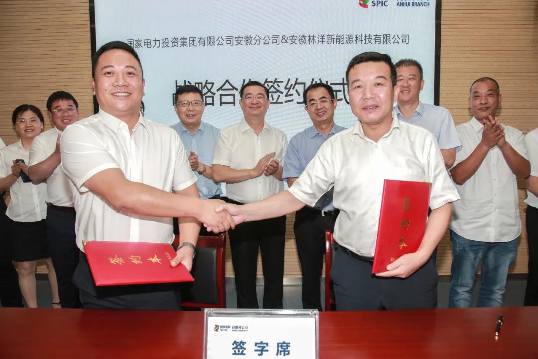 7月12日,江苏林洋能源股份有限公司全资子公司安徽林洋新能源科技有限公司(以下简称“安徽林洋新能源”)与国家电力投资集团有限公司安徽分公司(以下简称“国电投安徽分公司”)签署战略合作框架协议。国电投安徽分公司党委书记、总经理黄云涛,党委委员、副总经理刘昌胜,发展总监、规划发展部总经理朱伟明,计划与财务部财务总经理常西凡,林洋集团总裁、林洋能源董事长陆永华,林洋集团副总裁方壮志、陈金敏,安徽林洋新能源总经理苏亮等领导出席会议。