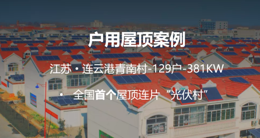图片位于江苏连云港市青南村的381KW光伏电站项目是全国首个屋顶连片“光伏村”,建成于2014年。天合光能提供了1556块多晶硅组件,总装机量381千瓦,截至今年1月20日,光伏电站为该村带来的收益累计近230万。