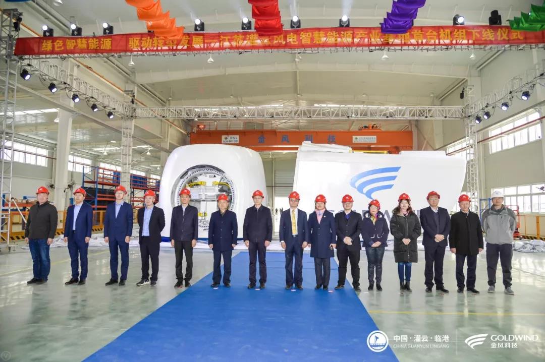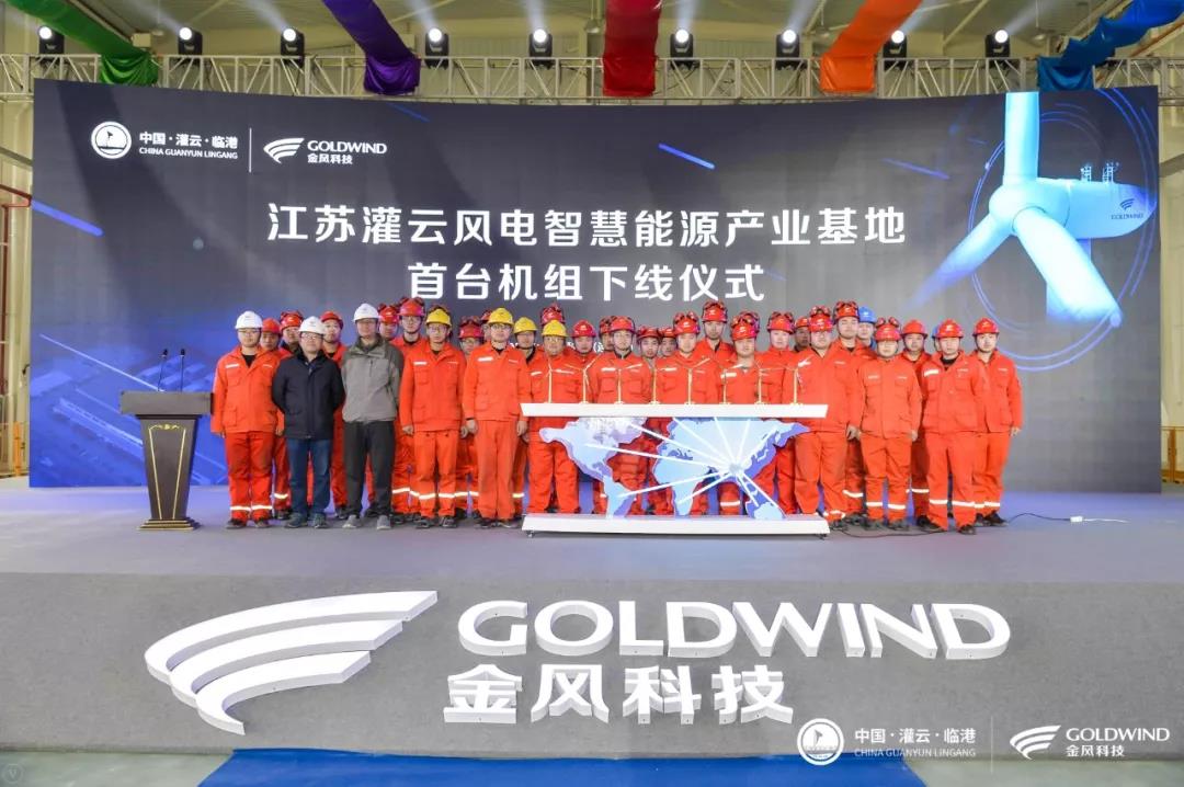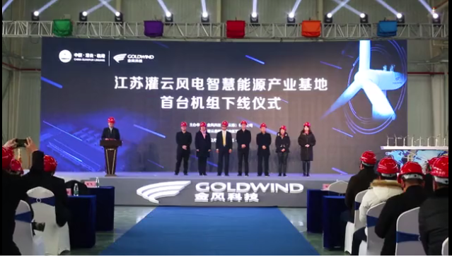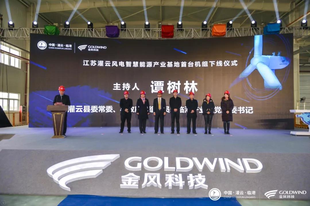 2019年12月20日,金风科技(连云港)有限公司内,江苏灌云风电智慧能源产业基地首台机组下线仪式落下帷幕。