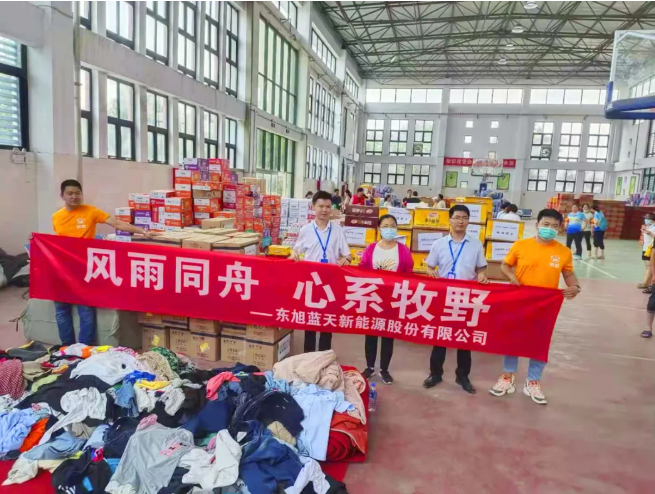 东旭集团董事长李兆廷指示,要为河南抗洪救灾尽一份力。东旭蓝天得知河南新乡受灾后,群众生活物资较为缺乏,当即决定紧急采购方便即食的食品物资送往救灾一线。公司管理层号召公司上下积极担当、快速响应,要第一时间把灾区最需要的物资送到群众手中。
