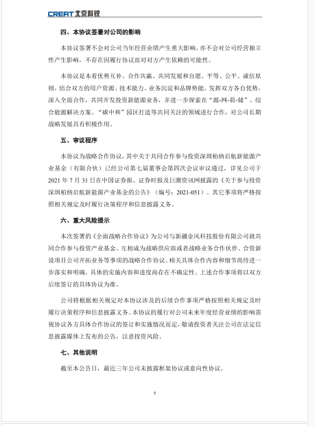 7月30日,北京科锐公告:北京科锐和新疆金风科技将培育和发展全面长期战略合作关系,联手开拓新能源市场,成为清洁能源的整体解决方案提供商,拓展负荷侧的能源类业务。合作内容包括:共同合作参与投资深圳柏纳启航新能源产业基金(有限合伙);双方成为对方的战略供应商或者战略业务合作伙伴;共同出资注册成立金风科锐新能源投资有限公司。具体公告如下: