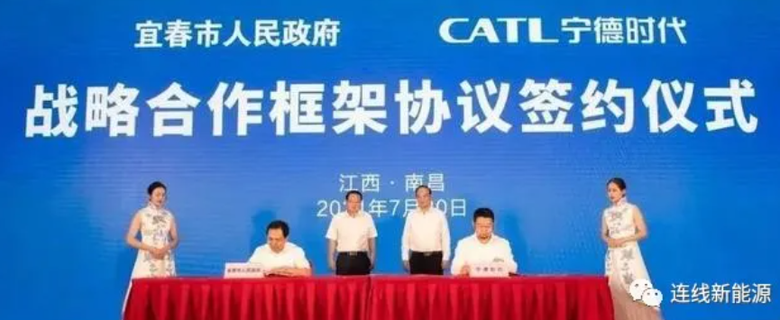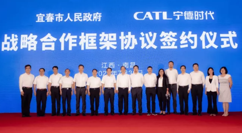 7月30日,江西省政府、宜春市政府分别与宁德时代新能源科技股份有限公司在南昌签署战略合作框架协议。江西省委书记刘奇会见了宁德时代董事长曾毓群一行,江西省委副书记、省长易炼红出席签约仪式并致辞。