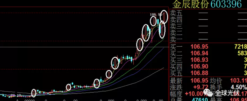 今日表现抢眼的另一只光伏股票是金辰股份。因为近期不断传出其异质结设备的出货信息,金辰股份今日收获了2021年第12个涨停,也是今年4月分红除权后第10个涨停,也是SNEC展会后至今第8个涨停!