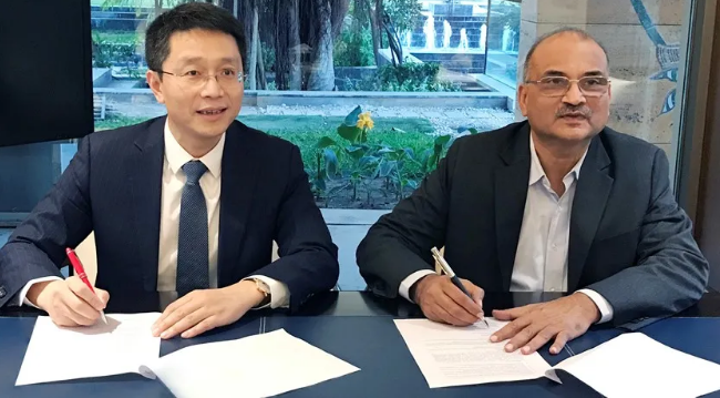 中信博营销中心负责人容岗(图左)与Adani供应链负责人Mr.Sanjiv Kothari(图右)签署项目合作备忘录
