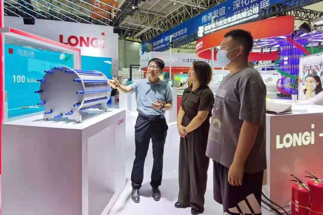 此外,为展示中阿能源行业的技术产品和应用成果,本届中阿博览会还专门设置了线上和线下清洁能源新型材料展,以展示新能源、储能等清洁能源新技术新产品。隆基氢能作为参展商,将集中展示电解槽等相关产品,现场受到媒体和观众的追捧。