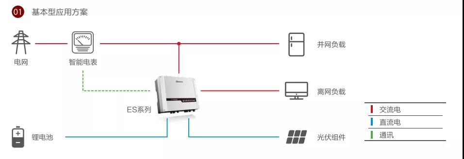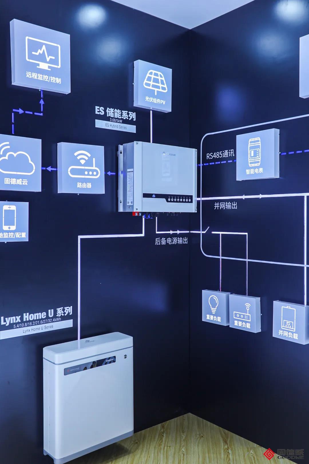 固德威光储系统解决方案固德威智慧绿电解决方案可以完全满足小屋的用电需求,完整的储能型光伏系统由以下几个部分构成:光伏组件阵列、ES系列储能逆变器、电网、Lynx Home U系列储能电池、本地负载;白天光伏组件所发的电力可通过储能光伏逆变器提供给本地负载或并入电网,剩余的电还可以给储能电池充电;晚上根据需要可把储能电池中的电能释放出来,此外电网也可通过逆变器给储能电池充电。