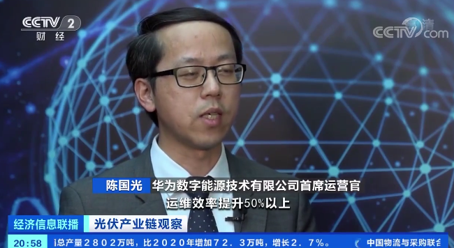 8月25日,华为数字能源公司首席运营官、华为智能光伏总裁陈国光接受CCTV-2《经济信息联播》采访(央视新闻标题:《光伏发电进入平价时代,智能化运维降本增效》),介绍了华为智能光伏解决方案关键技术以及对行业加速进入平价时代的价值贡献。