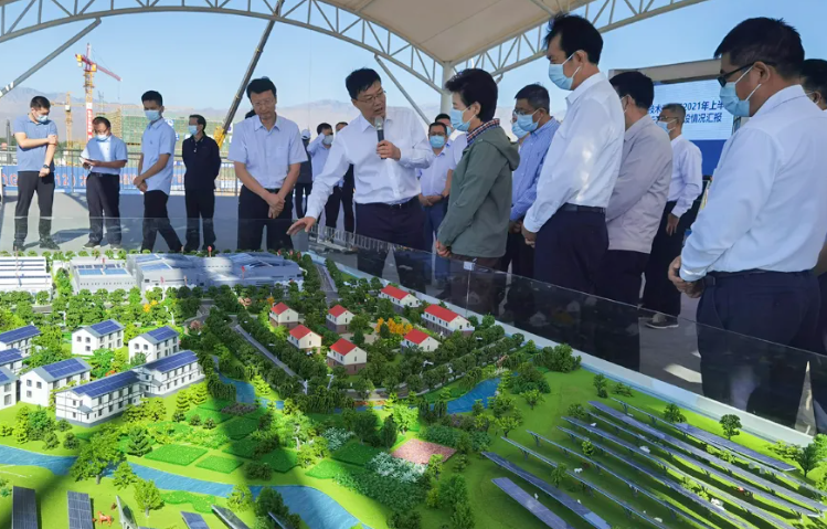 2021年8月25日,宁夏回族自治区全区推进黄河流域生态保护和高质量发展先行区建设第五次推进会北线观摩团深入宁夏中环光伏材料有限公司实地观摩,自治区党委副书记、自治区主席咸辉带队,中环半导体副总经理杨永生接待。