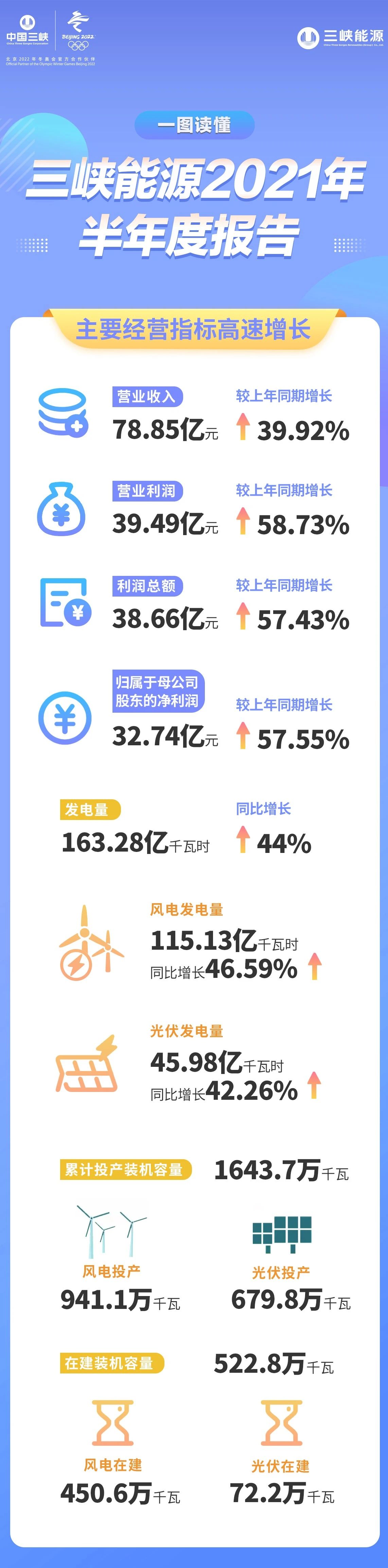 8月26日,中国三峡新能源(集团)股份有限公司(“三峡能源”;股票代码:600905)发布2021年半年度报告。