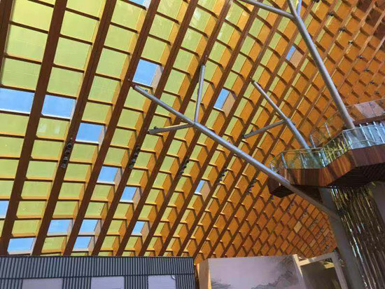 吴奔说,中国馆是世界光伏领域“高、精、尖、难”的代表作,也是龙焱能源长期积累高级、精密、尖端光伏技术的完美体现。根据建筑的设计要求,每片太阳能组件呈扇形,形状各异,加工难度大,精度要求高,作为国家级工程对外观要求异常严格,光伏顶不仅要满足室内采光、保温及隔热的需求,也要满足发电的功能,还要满足建筑美学效果,由于3大技术指标要求下,光伏玻璃的多尺寸、多规格等可定制化程度都是一个量变到质变的过程。