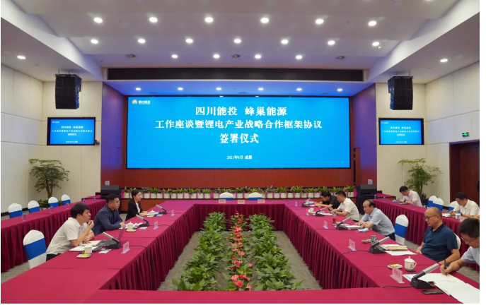 四川能投与蜂巢能源在四川能投总部举行工作座谈会暨锂电产业战略合作框架协议签约仪式。四川能投党委书记、董事长孙云,蜂巢能源董事长、首席执行官杨红新出席并讲话。四川能投副总经理牟俊,蜂巢能源副总裁全素涵分别代表双方签约。四川能投总经济师张昌均,蜂巢能源资深经理刘彦波等出席活动。