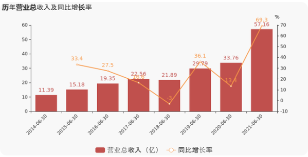 据福斯特消息:福斯特2021上半年实现营业总收入57.2亿,同比增长69.3%;实现归母净利润9亿,同比增长98.1%;每股收益为0.98元。