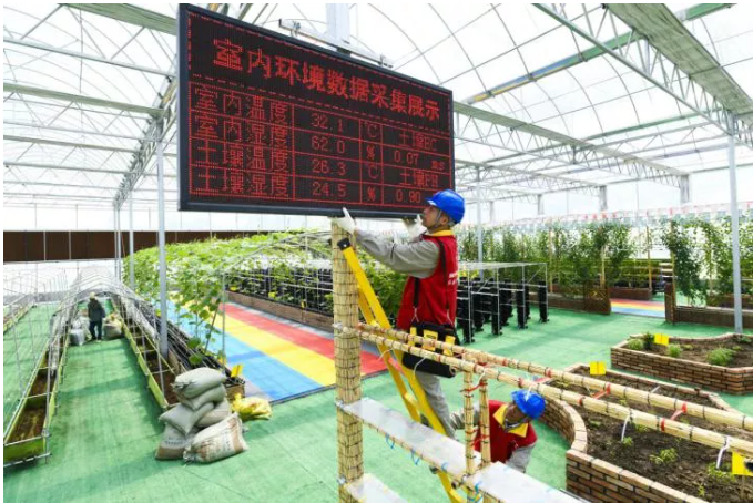 ▲国网宁夏电力员工在全电气化智慧农业大棚检查设备