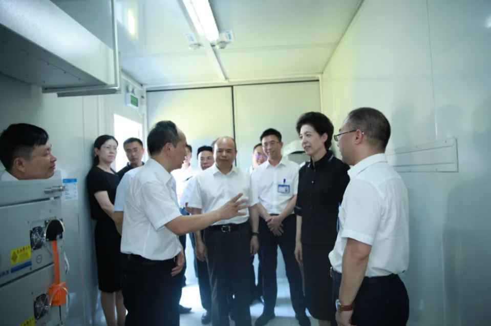 乌兰书记一行先后参观考察了公司多能物联数据中心、新能源微电网示范站和生产车间,了解储能设备、技术、市场等情况,并认真听取了董事长黄文宝对公司生产经营、储能技术创新与市场拓展情况汇报和关于支持湖南本土新能源装备企业的诉求。