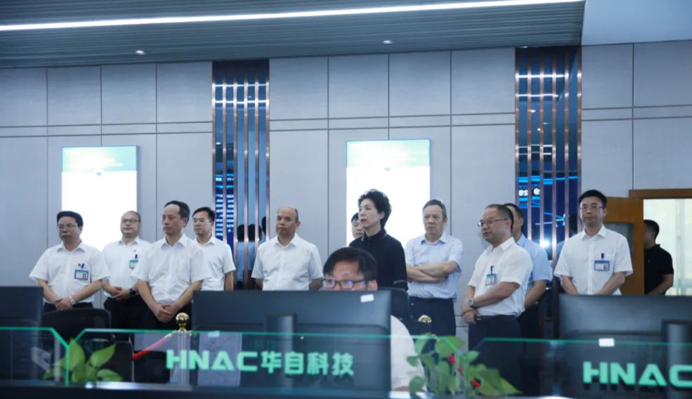 2021年9月24日,湖南省委副书记乌兰莅临华自科技,就湖南省新型能源装备及电力装备产业发展情况进行考察。省委副秘书长肖祥清,省工信厅副厅长黄宝林,省工信厅总工程师、一级巡视员黄学工,省能源局局长石超刚,长沙高新区党工委副书记、管委会主任郭力夫等陪同调研,华能自控集团董事长、华自科技董事长黄文宝,华能自控集团总裁汪晓兵,华自科技总裁佘朋鲋、副总裁袁江锋、唐凯等出席活动。