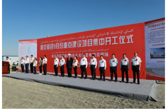 9月26日,阿克塞哈萨克族自治县举行9月份重点建设项目集中开工仪式暨正泰阿克塞县200MW光伏发电项目开工仪式。当地政府领导、正泰新能源地面电站事业部总经理黄启银出席本次开工仪式,宣告项目开工!