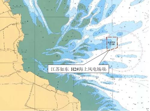 该项目位于江苏省如东县海域的东北部,铁板沙南侧,场区中心离岸距离约50km。整个风电场形状呈长方形,东西方向长约 8.5km,南北方向宽约为 7.2km,规划装机容量 350MW。其中本施工标段(Ⅱ标段)位于整个风电场南部,装机容量150MW,海底高程(85 高程)在-21m~-6m 之间,场区水深自西向东逐渐增大。
