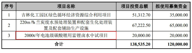 这12亿元的用途之一,是一个2000吨/年的电池级碳酸锂用富锂卤水中试项目。