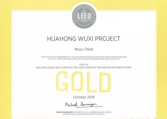 十一科技风采:华虹无锡项目荣获LEED v4认证金奖及“二星级绿色建筑设计标识证书”
