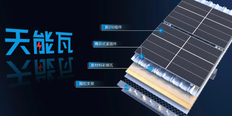 以天合光能推出的“天能瓦”为例,将使用期限同样25年的新型彩钢瓦和光伏组件有机结合,采用榫卯结构和无导轨设计,各个构件之间的节点以榫卯相吻合,组件不易脱出,组成安全、紧固的一体化框架体系。