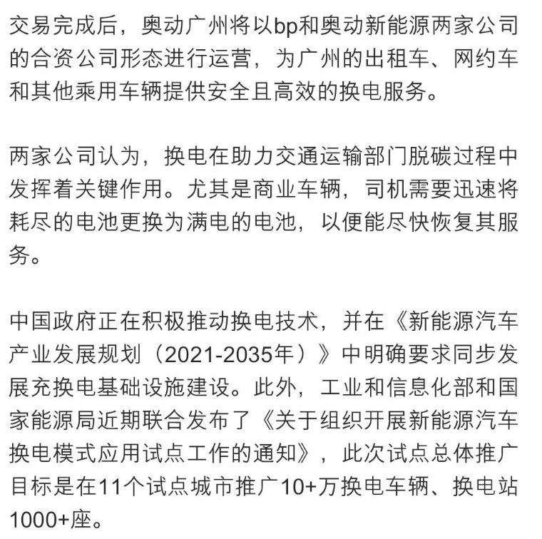 “换”然一新!bp 携手奥动新能源,助力中国发展换电网络
