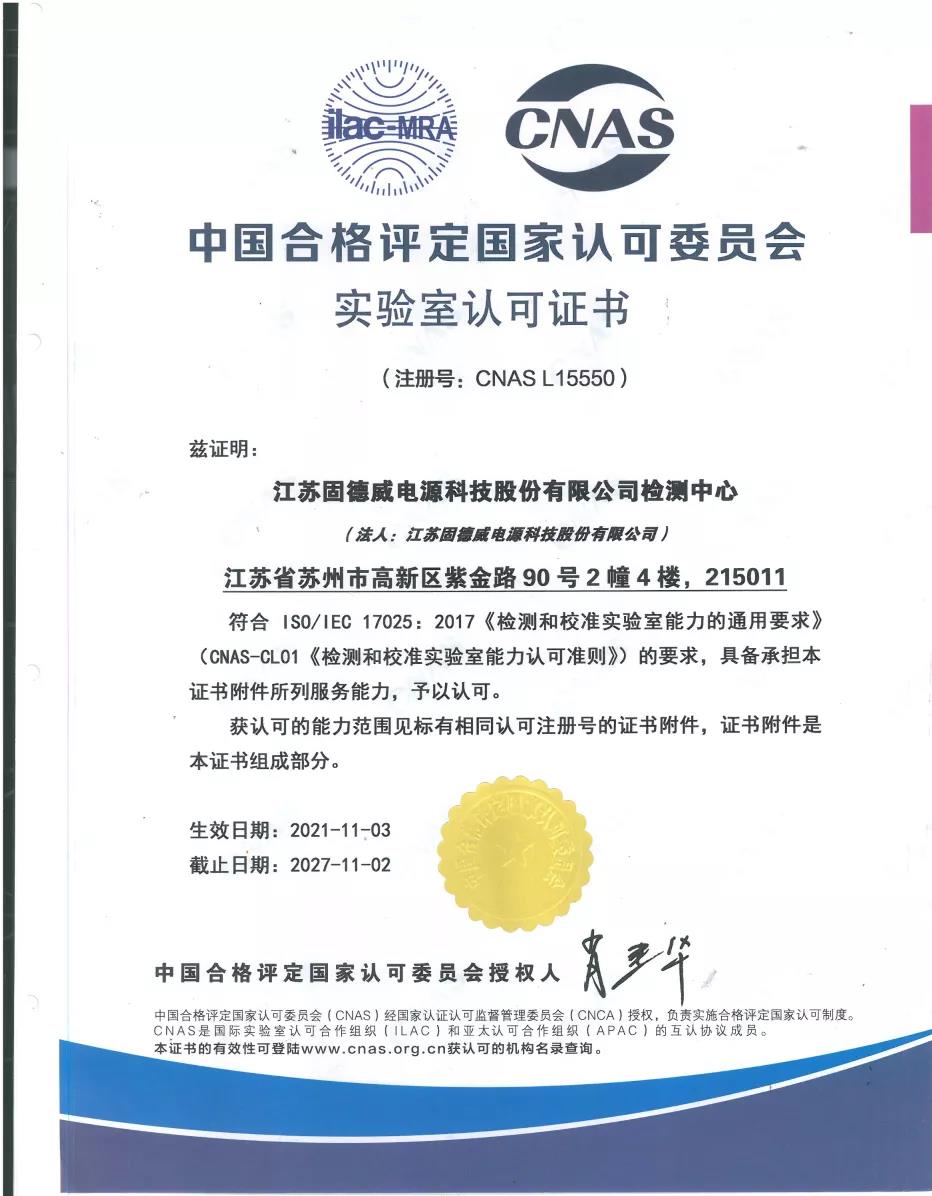 近日,固德威技术股份有限公司(以下简称“固德威”)检测实验室经过严格的书面和现场评审等环节,顺利通过CNAS(中国合格评定认可委员会)国家检测实验室认可。