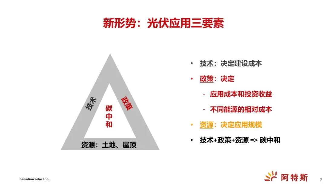 我把决定光伏应用的条件总结为三要素:技术、政策和资源供应。