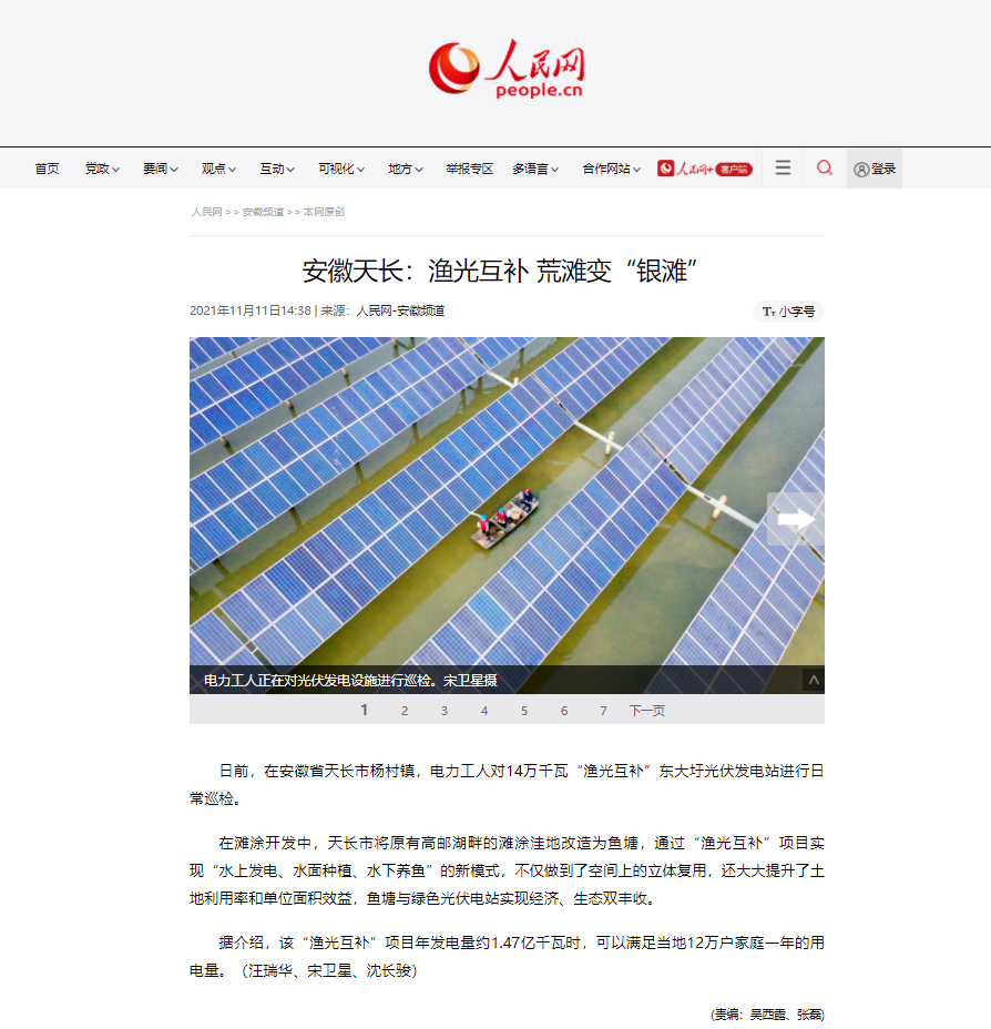 经济、生态双丰收!华东院安徽天长渔光互补光伏项目让荒滩变“银滩”