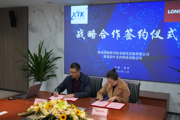11月17日,隆基光伏分布式与陕西国铁科学技术研究发展有限公司(以下简称“陕西国铁科技公司”)在隆基股份总部举行战略合作协议签约仪式,陕西国铁科技公司党委书记、董事长张海旭、隆基股份分布式全球负责人牛燕燕双方签署战略合作协议。