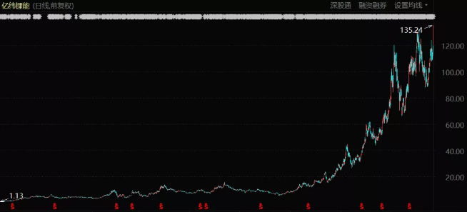 这一消息迅速点燃了资本市场的热情,次日开盘,动力电池板块迅速反应,宁德时代、科达制造、中国宝安等相继大涨。亿纬锂能,更是暴涨15.88%,刷新历史新高。