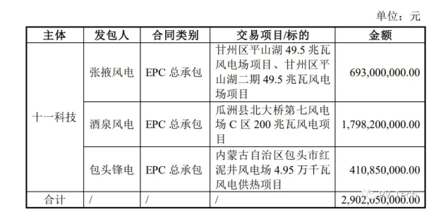 除了光伏领域的动作,不久前,十一科技还分别与张掖风电、酒泉风电、包头锋电签署风电场项目EPC总承包合同,合计金额29.02亿元。