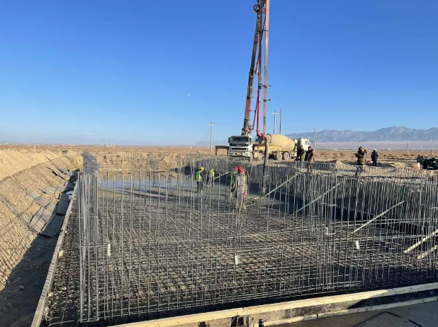 目前,已完成10兆瓦支架基础打桩与混凝土浇筑,以及升压站土建一、二次舱基础混凝土浇筑,正在开展光伏场区支架安装,本月27号左右升压站具备设备安装条件;同时,送出线路塔基基础、钢筋绑扎、混凝土浇筑、围栏及箱逆变基础等工作正在有序进行,预计11月底完成升压站和外线线路基础施工。