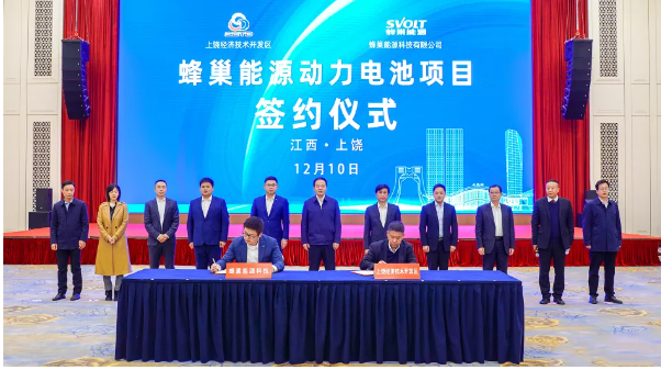 12月10日,蜂巢能源科技股份有限公司投资100亿建设16GWh动力电池项目正式签约落户上饶经开区。蜂巢能源董事长兼CEO杨红新、高级副总裁杨永旺和上饶市委市政府主要领导陈云、邱向军等双方领导出席了签约仪式。