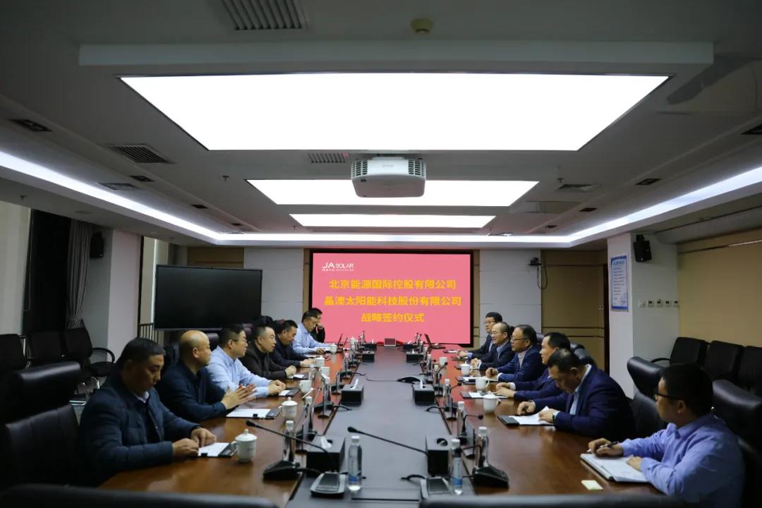 12月13日,晶澳科技与北京能源国际控股有限公司(京能国际)战略合作签约仪式在晶澳科技北京总部举行。京能国际董事会主席张平,总裁朱军,副总裁黄慧,副总裁贾耕,副总裁王六虎,经营计划部总经理刘吉广;晶澳科技董事、执行总裁牛新伟,董事、高级副总裁黄新明,助理总裁李栋,中国区总经理张凤海等出席签约仪式。晶澳科技董事、高级副总裁黄新明,京能国际副总裁黄慧代表双方签署战略合作协议。
