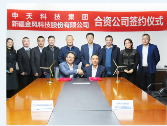 12月15日,金风科技全资子公司广东金风科技有限公司(下称“广东金风”)与中天科技全资子公司中天科技集团海洋工程有限公司(下称“中天海洋工程”)在金风科技亦庄“碳中和”智慧园区举办合资公司签约仪式。双方将发挥各自优势,共同打造新一代自升式海上风电安装船。金风科技董事长武钢、副总裁李飞、海上业务单元总经理王健,中天科技集团董事长薛济萍、副总经理薛如根、海洋产业集团总裁肖方印等出席仪式。
