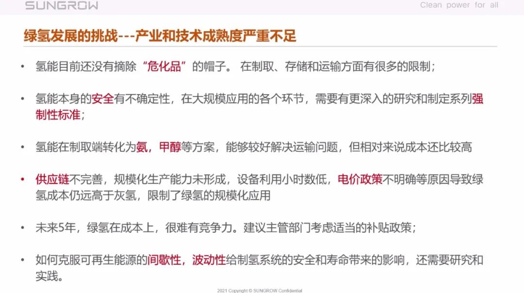 除了成本还有产业和技术成熟度严重不足,比如氢能目前还没有摘除“危化品”的帽子,在制取、存储和运输方面有很多限制等。