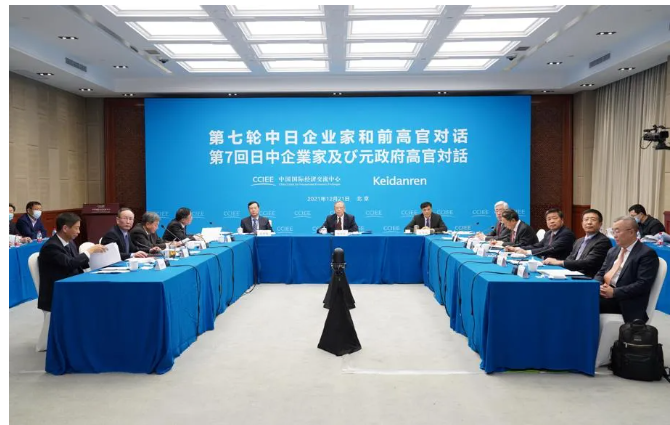 2021年12月21日,第七轮中日企业家和前高官对话会议以现场与线上视频形式举行,国务院原副总理、中国国际经济交流中心理事长曾培炎,日本前首相福田康夫率双方代表与会,就中日经济形势、区域经济合作、绿色转型、养老照护等议题展开交流,并发表联合声明,旨在促进双边经贸交流与合作,构建契合新时代要求的中日关系。天合光能副总裁兼首席品牌官杨晓忠应邀出席,并就天合光能助力推动中日清洁能源发展与碳中和发言。
