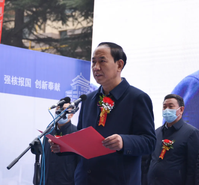 康泰来在致辞中表示,麦积区委、区政府热烈祝贺中核新华黄龙抽水蓄能发电有限公司成立。他指出,天水黄龙抽水蓄能电站项目总投资130亿元,涉及新能源前、中、后全产业链各环节,对麦积区工业发展具有里程碑意义,必将为麦积经济社会高质量发展、全面推进乡村振兴注入强劲动力。希望新华发电公司充分发挥企业优势,加快项目建设进度,把项目建成精品工程、示范工程,早日建成投产,早日为麦积绿色转型发展贡献力量。