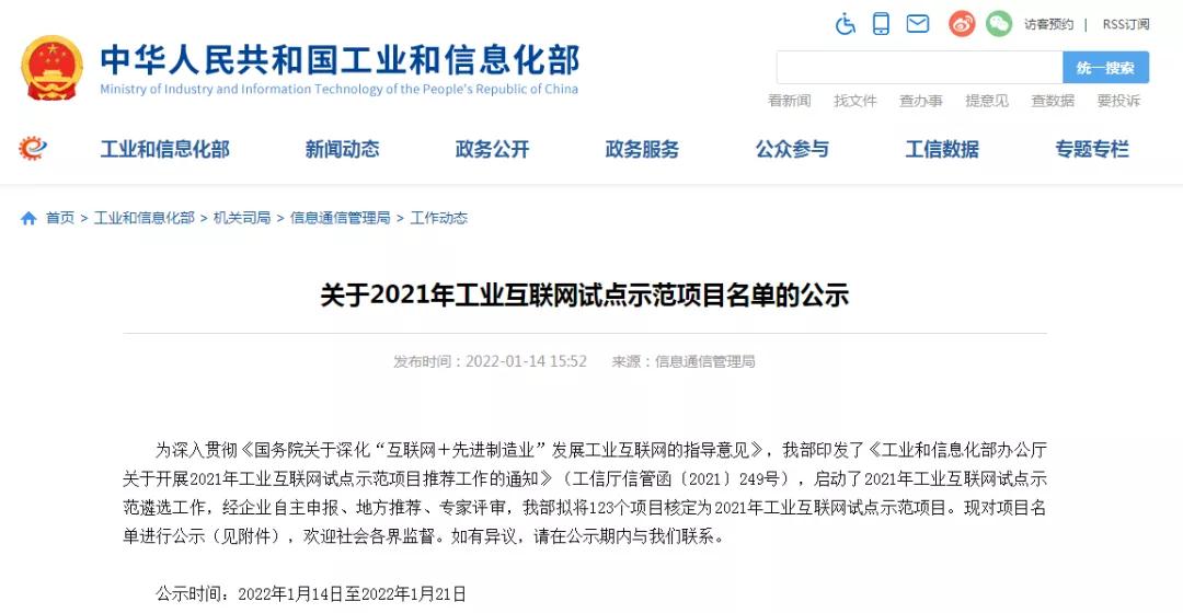 金榜挂名!特变电工2项目入围工信部工业互联网试点示范项目