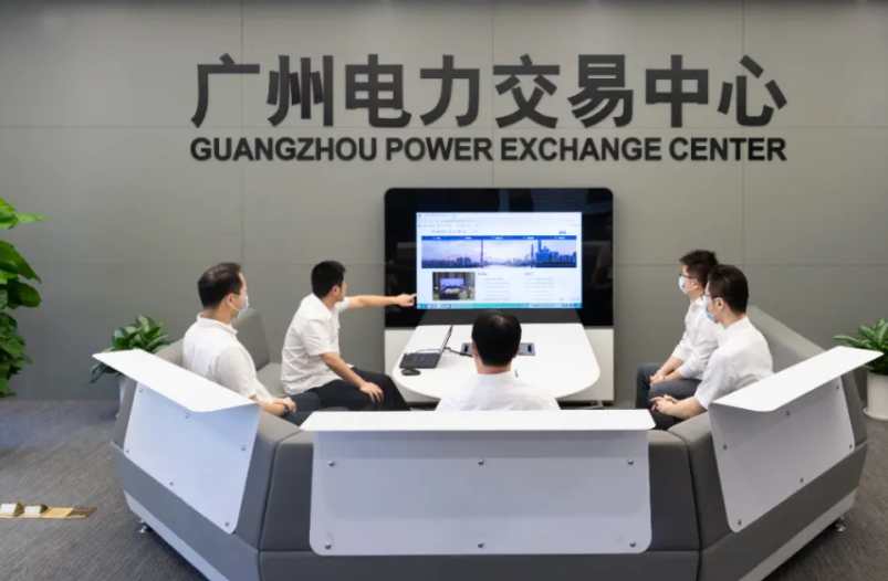 广州电力交易中心大厅在进行绿电交易