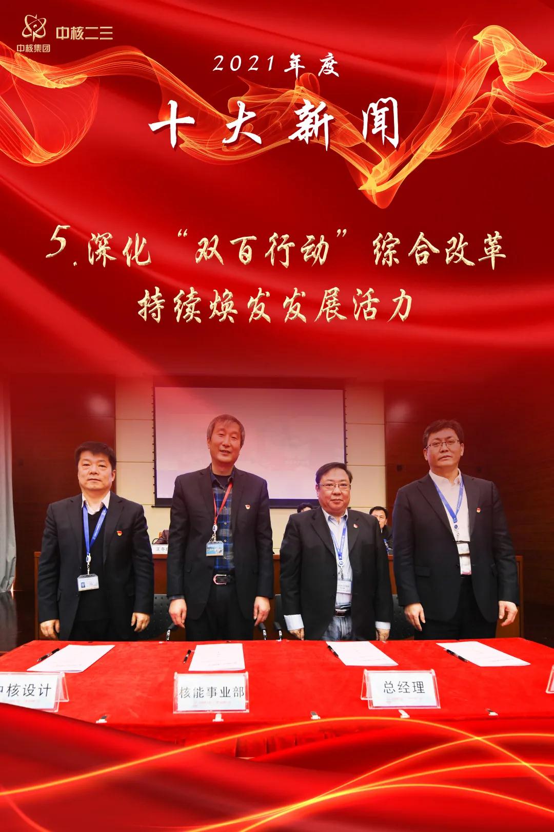 2021年9月,国务院国资委公布最新“双百企业”名单,中核集团4家单位入选,中核二三位列其中。国企改革“双百行动”,是国务院国有企业改革领导小组组织开展的国企改革专项行动之一。2021年,公司深化“双百行动”综合改革,明确6大改革领域40项改革任务。计划完成29项改革任务,实际完成37项,年度任务完成率为128%,总体改革任务完成率92.5%。厘清各治理主体权责边界,进一步落实董事会职权。全面实施经理层成员任期制和契约化管理,实现公司及二级单位经理层任期制和契约化100%全覆盖。加大年轻干部选拔力度,新提拔干部中40周岁以下占比72.22%。民用业务改革显成效,各项重点任务逐一落地,组织机构实现优化,体系建设与运营能力有效提升,非核经营模式不断优化,实现“四个扭转”,自主管理项目业绩贡献率达46%。
