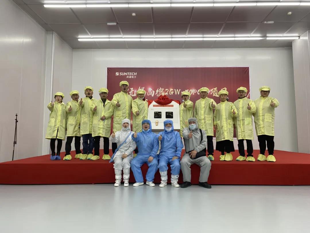 1月24日,无锡尚德举行2GW TOPCon高效电池智能工厂投产出片仪式,无锡尚德总裁何双权、先导智能董事长王燕清、微导纳米总经理周仁等领导及相关人员出席活动。