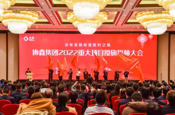 会上,朱共山还为协鑫集团2022年度重大项目逐一授旗。8大项目代表向全体协鑫人庄严誓师,挥旗出征。