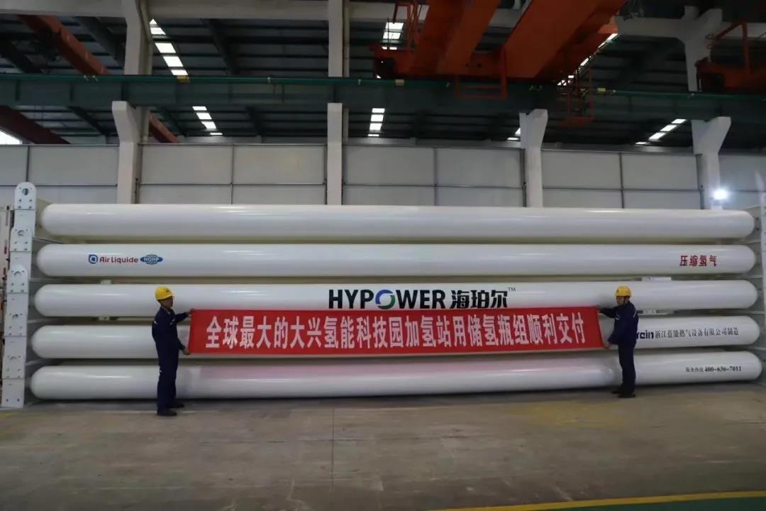 位于北京大兴国际氢能示范区的海珀尔加氢站是目前全球日加氢能力最大的燃料电池汽车加氢站,每天最大加氢量可达4.8吨。浙江蓝能为该项目专门设计、制造的45Mpa大容积高压储氢瓶组为冬奥会期间的燃料电池公交车加氢提供了安全可靠的保障。