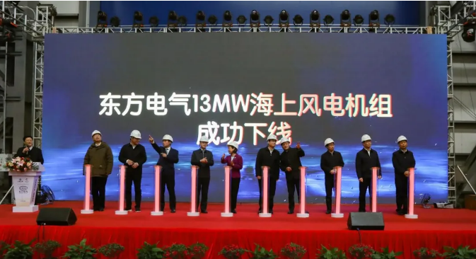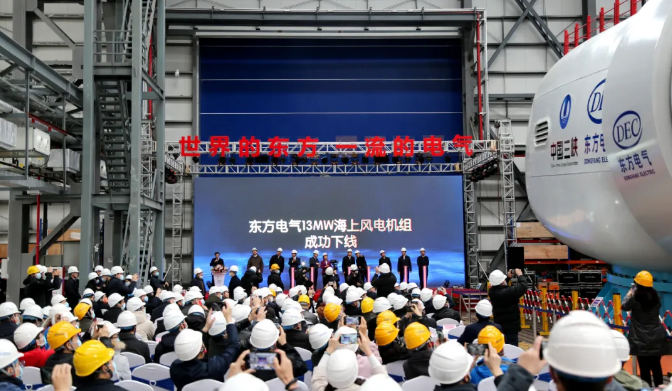 2月22日,由中国东方电气集团有限公司自主研制、拥有完全自主知识产权的13兆瓦抗台风型海上风电机组,在福建三峡海上风电产业园顺利下线,这是目前我国已下线的亚洲地区单机容量最大、叶轮直径最大的风电机组,也是我国下线的首台13兆瓦风电机组。