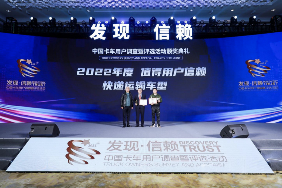 2022年2月22日,在中国卡车网主办的第七届“发现信赖中国卡车用户调查暨评选活动”颁奖盛典上,上汽红岩杰狮H6充换电一体牵引车凭借绿色、高效的运输解决方案,斩获“TCO运营值得用户信赖零排放运输车型”大奖。