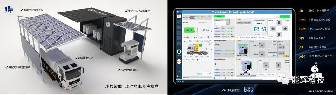 “小蚁”重卡换电机器人(AGV)和重卡储能动力电池