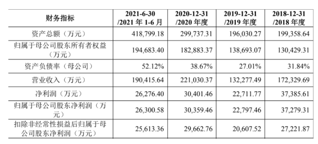 招股书显示,2018年、2019年、2020年和2021年前两季度,大族数控实现营业收入分别为17.23亿元、13.23亿元、22.10亿元和19.04亿元,净利润分别为3.74亿元、2.27亿元、3.04亿元、2.63亿元。