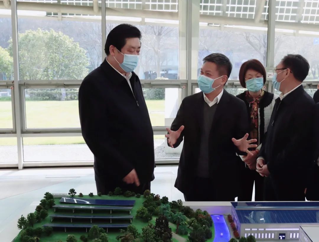 3月3日,无锡市代市长赵建军一行就碳中和碳达峰工作开展情况走访调研无锡尚德,市政府秘书长陈寿彬、市发改委、市工信局、市生态环境局、新吴区区长章金伟、旺庄街道书记黄锡渭,无锡尚德总裁何双权、高级副总裁陈必华、副总裁曹晓荣等陪同接待。