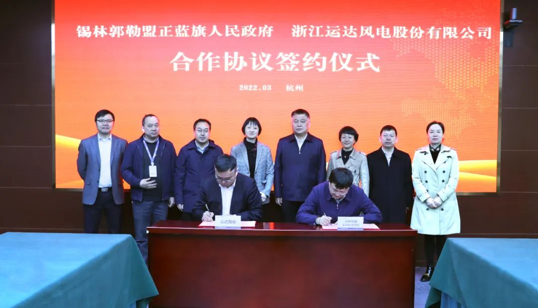 3月9日,运达股份与锡林郭勒盟行政公署(正蓝旗人民政府)合作签约仪式在杭州举行。根据协议,双方将携手围绕锡盟绿色能源、绿色制造业发展、推进示范区能源转型进程等方面进行详细部署,合力走出一条高质量发展新能源建设与乡村振兴相结合之路。